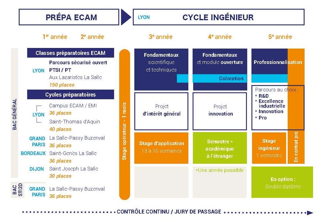 - Elles permettent d’intégrer, sur contrôle continu, le cycle ingénieur du campus ECAM LaSalle de Lyon.